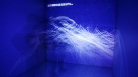 Shakespeare’s Hamlet is performed by one female actor, via video projection. An installation, an “environment” that the audience enters.